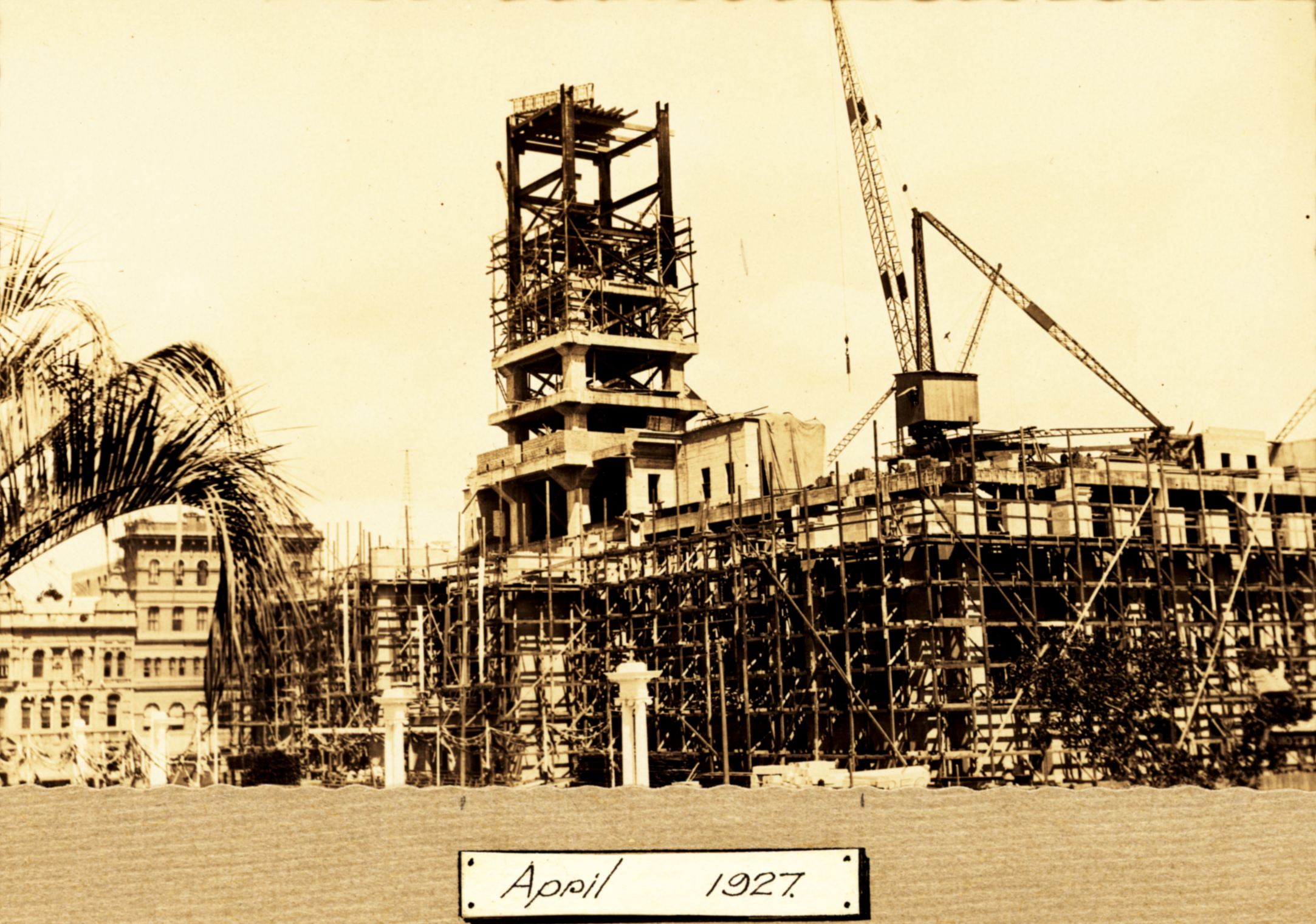 Photograph of the construction of the new Brisbane City Hall. Taken by Berta Mobsby, April 1927. Mobsby was the was the photographer during the construction of the new building. University of Queensland, UQ e-space To see more of these images please go to https://espace.library.uq.edu.au/records/search