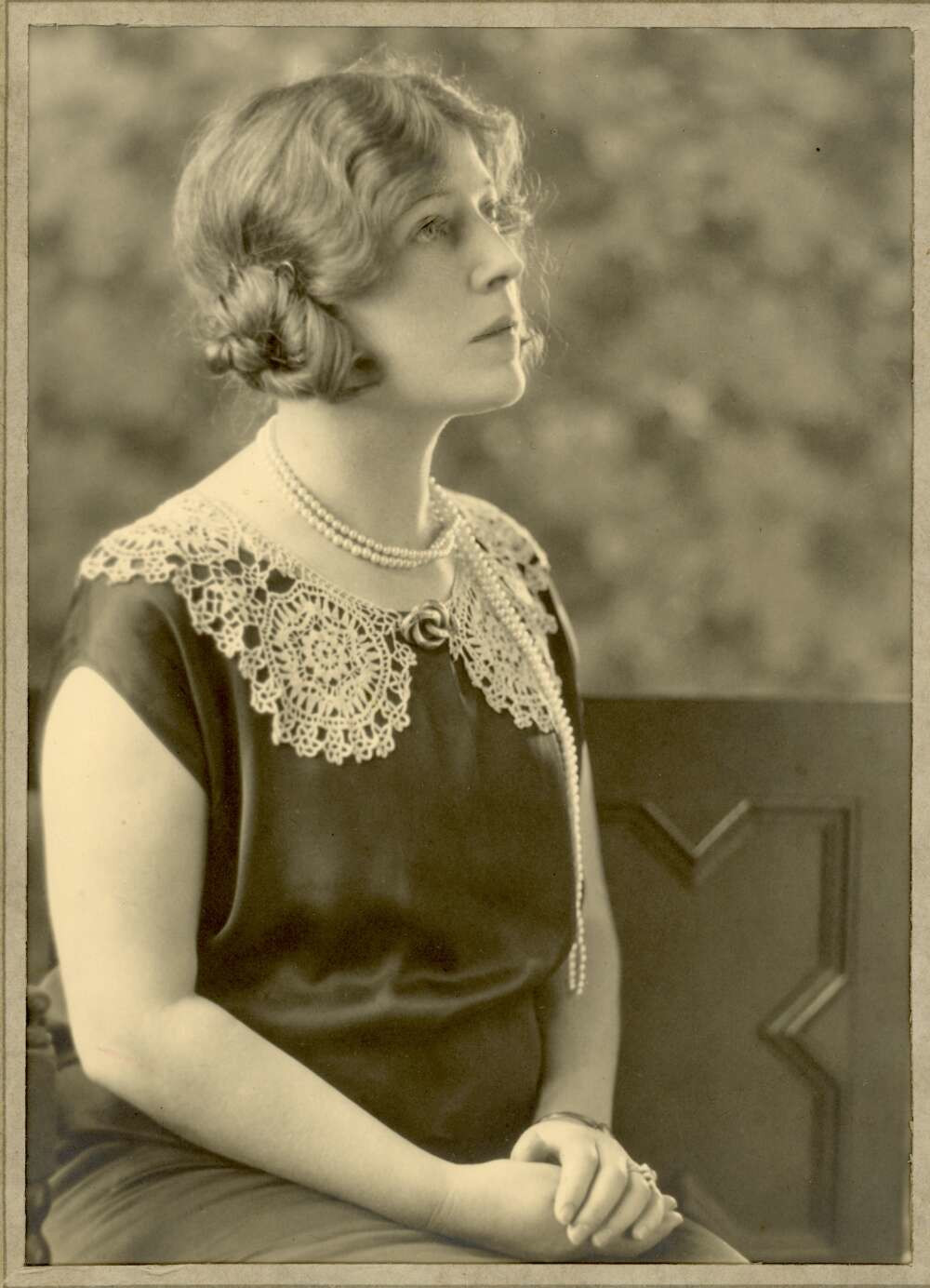 Portrait of Esther Paterson, taken by Marietta Malmgren, Marietta Studio, c1920s. Black and white photograph 21.1cm x 14.9cm on mount 31.4cm x 22.4cm. Paterson Family Photograph Collection, National Library of Australia.
