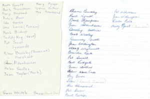 Handwritten list of people who worked at the Blodwen Thomas Studio. Courtesy Judith Bunney.